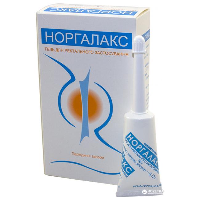 Норгалакс выпускается в форме ректального геля по 10 грамм в тубе-канюле, по 6 штук в упаковке.