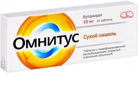 Таблетки c модифицированным высвобождением, покрытые пленочной  оболочкой: индивидуальная непереносимость к действующему веществу бутамирату или к любому вспомогательному компоненту прапарата Омнитус, беременность, период лактации,