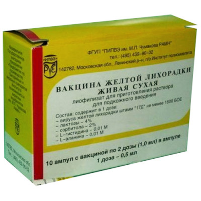 Латинское название: YELLOW FEVER VACCINE, LIVE, DRY