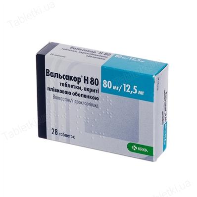Лекарственная форма Вальсокор Н 80: таблетки, покрытые пленочной оболочкой таблетки, 80 мг + 12,5 мг