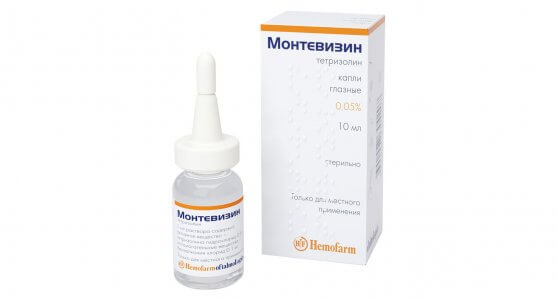 В 1 мл раствора Монтевизин содержится: активное вещество - Тетризолина гидрохлорид 0,5 мг;