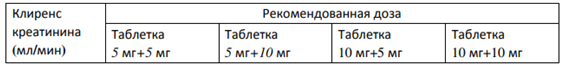 Таблетки, покрытые пленочной оболочкой, 5 мг + 5 мг, 5 мг+10 мг, 10 мг + 5 мг, 10 мг + 10 мг. По 29 или 30 таблеток во флакон из полипропилена, снабженный дозатором из полиэтилена и пробкой, содержащей осушитель (силикагель). По 1 флакону вместе с инструкцией по медицинскому применению в пачку картонную с контролем первого вскрытия. Упаковка для стационаров: По 30 таблеток во флакон из полипропилена, снабженный дозатором из полиэтилена и пробкой, содержащей осушитель (силикагель). По 3 флакона по 30 таблеток с инструкцией по медицинскому применению в пачку картонную с контролем первого вскрытия.