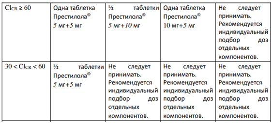 Для дозировки Престилол 5 мг+ 10 мг